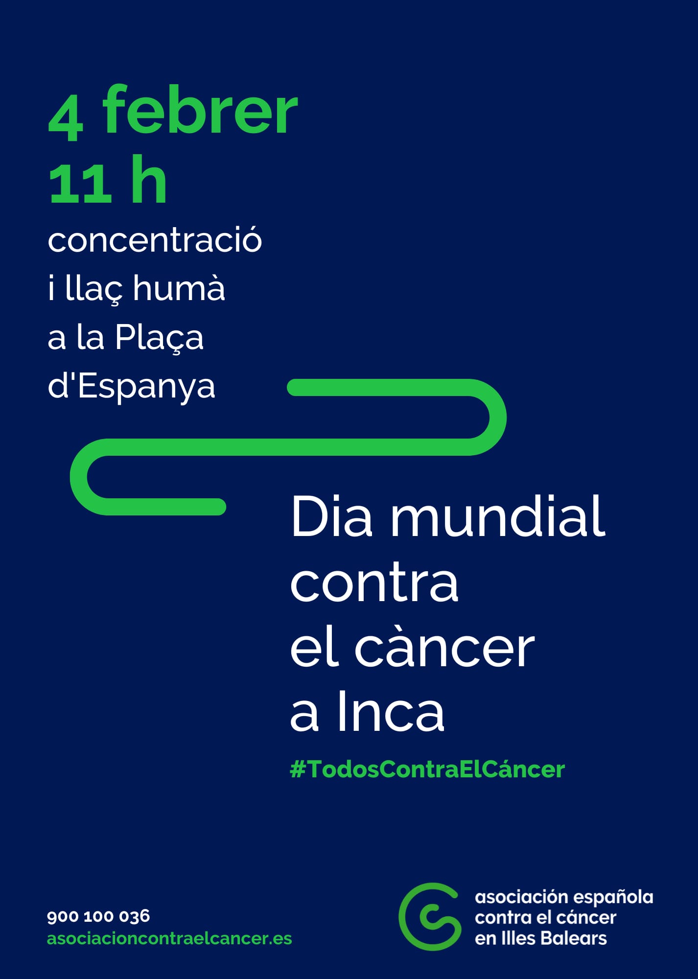 Amb motiu del dia mundial contra el càncer, farem un gran llaç humà a la Plaça Espanya d’Inca. Esteu tots convocats a la concentració i llaç a partir de les 10,30h.